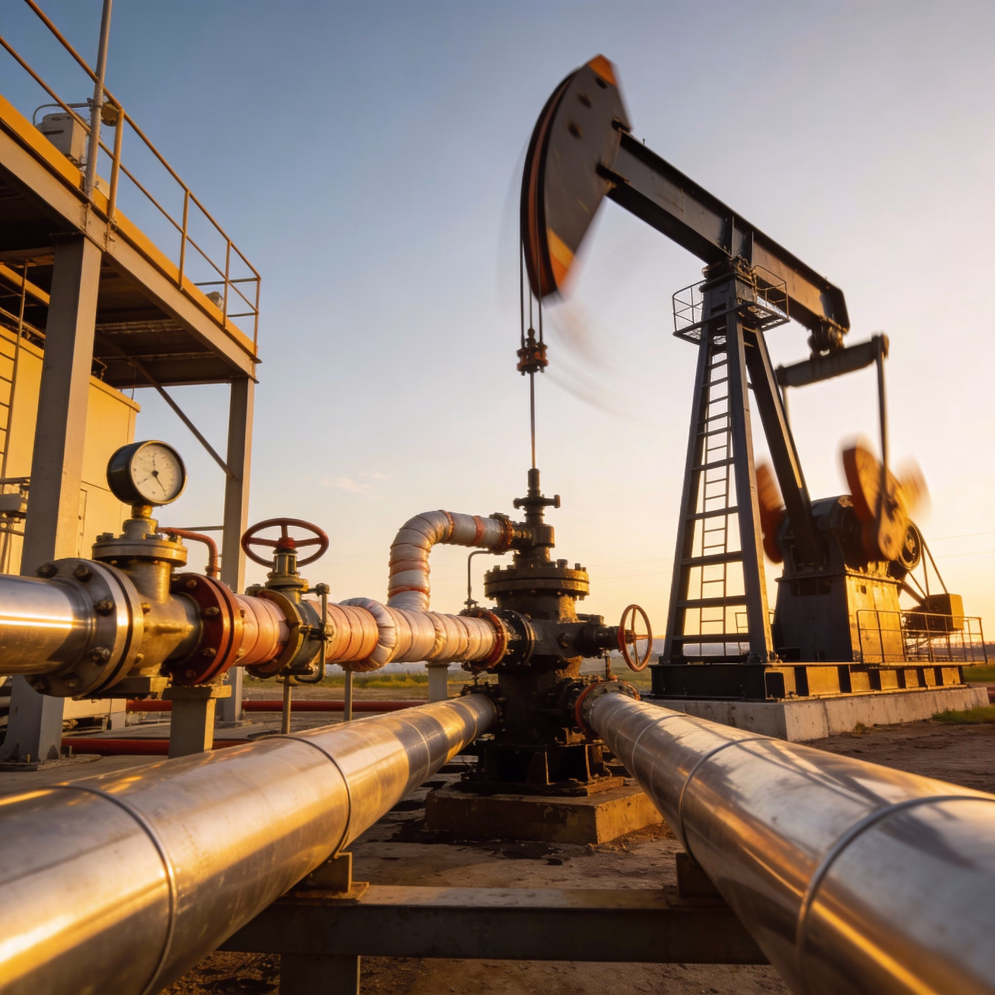 Oilfield equipment, machinery, maintenance facilities, tanks, and industrial operations.